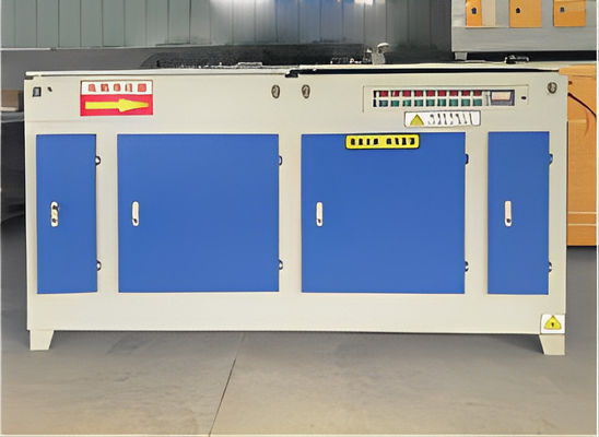 3. After the malodorous gas is input into this purification equipment by the exhaust equipment, the purification equipment uses high-energy C-wave light beams and ozone to carry out a synergistic decomposition and oxidation reaction on the malodorous gas, so that the malodorous gas substance is degraded and transformed into low-molecular compounds, water, and carbon dioxide, and then discharged outdoors through the exhaust duct.